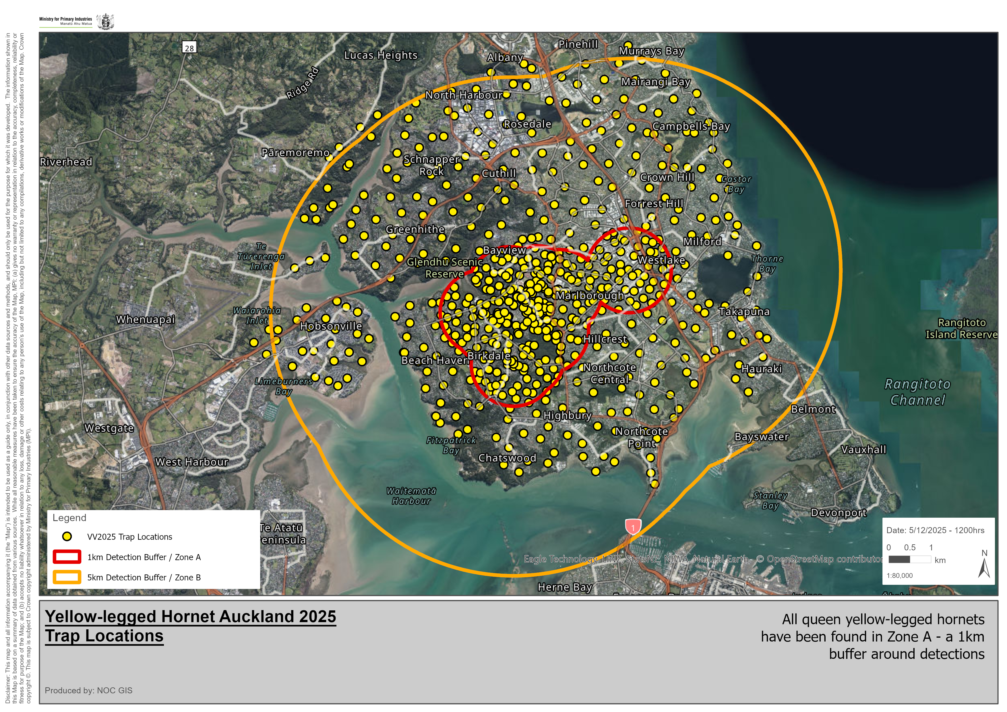 - trapping has been extended out to 5km from the hornet detections, with a combination of carbohydrate and protein traps. Further extensions are being made as needed
