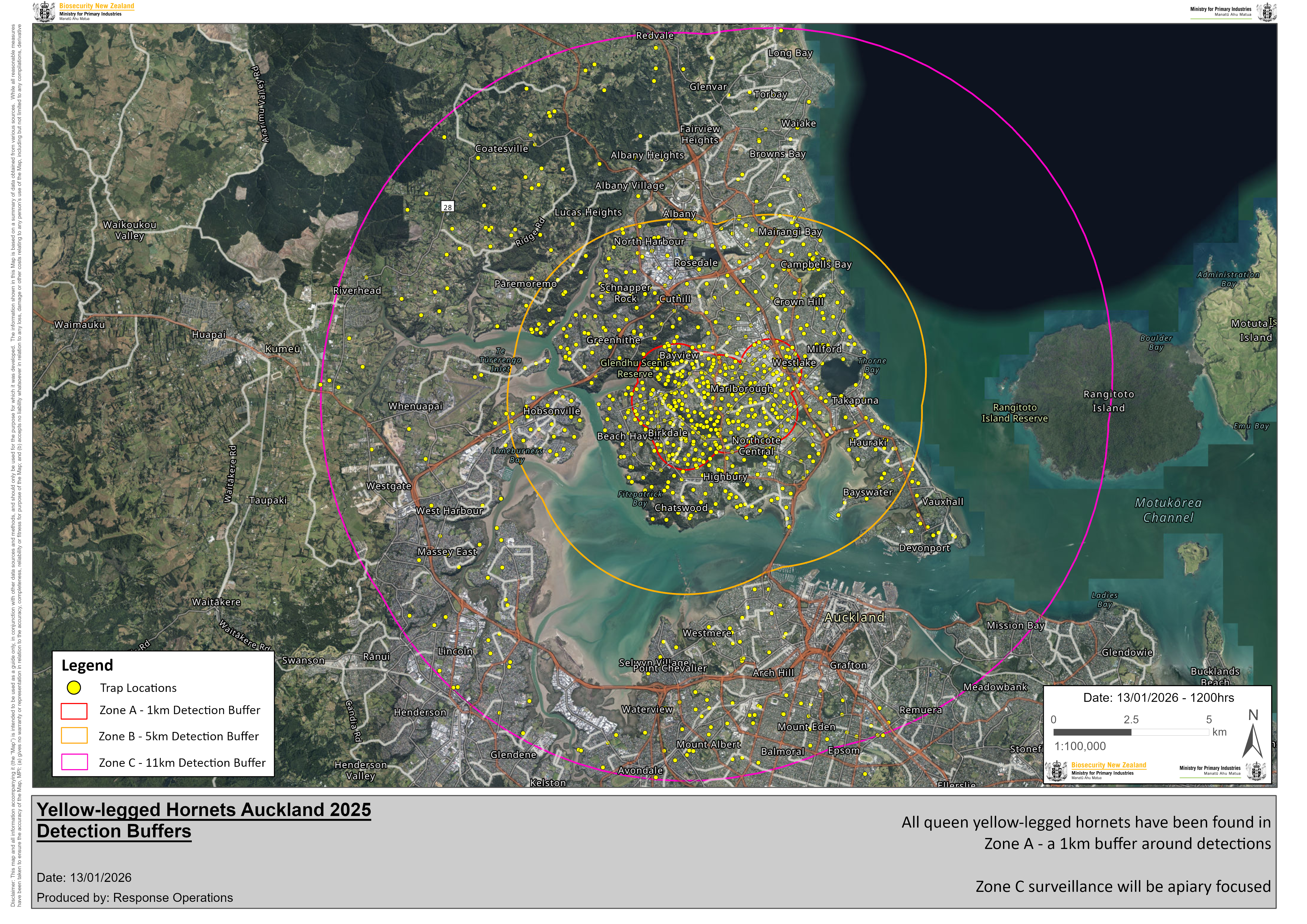 Biosecurity New Zealand is urging Aucklanders to continue to be on the lookout for yellow-legged hornets (Vespa velutina) or nests.