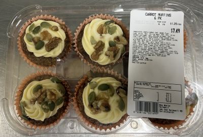 - Carrot Muffins (6 PK): The 'Best Before' dates are 10.02.2026, 11.02.2026, 12.02.2026, 13.02.2026