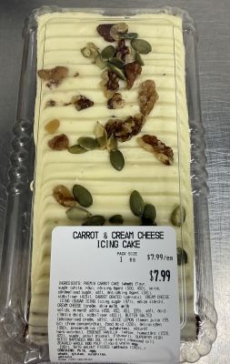 - Carrot and Cream Cheese Icing Cake (various sizes): The 'Best Before' dates are 10.02.2026, 11.02.2026, 12.02.2026, 13.02.2026.